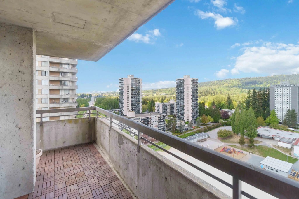 Tenant related to owner, easy to show, Move in ASAP! BRIGHT, SPACIOUS 1 BEDROOM, 1 BATH CORNER UNIT in Timberlea, MOVE IN READY, with a covered wraparound balcony offering STUNNING NORTH AND WEST VIEWS of the city and mountains. Great layout features combined living room/dining area with laminate flooring, lots of windows for natural light, spacious bedroom, and roomy kitchen with lots of cupboard and counter space. Enjoy fantastic amenities including an indoor pool, lounge, fitness centre, games area with pool table and ping pong, plus a workshop. Ideally located near Lougheed Mall and SkyTrain for easy shopping and commuting. Heat, hot water, and electricity included in maintenance fee, along with the use of 1 parking stall and 1 storage locker. Incredible value! A MUST SEE!