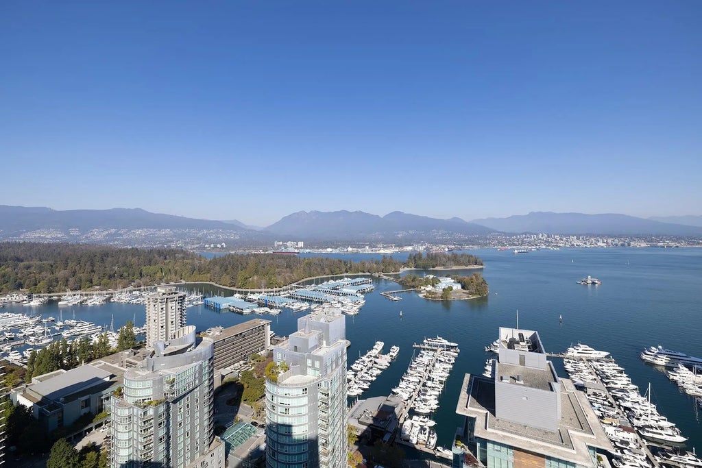 Totally renovated like brand new and fully furnished luxurious condo in prestigious Coal Harbor with over 270 degrees of unobstructed jaw-dropping views! This spacious 2 bedroom + open den, 2.5 bathroom condo is 1st time on the rental market and second to none! The floor to ceiling windows frame the view beautifully. From the Lions Gate Bridge to Stanley Park, the North Shore Mountains to UBC, English Bay and the cityscape, everywhere you look out the window, you will see an iconic site. The condo is fully furnished with high end imported European furniture featuring the theme of Ocean and Mountain wisely displayed by the designer. Open concept chef's kitchen with the best Gaggenau appliances, huge Sub-zero fridge with pantry and wine fridge! 2 zoned air conditioning. 2 parking stall.