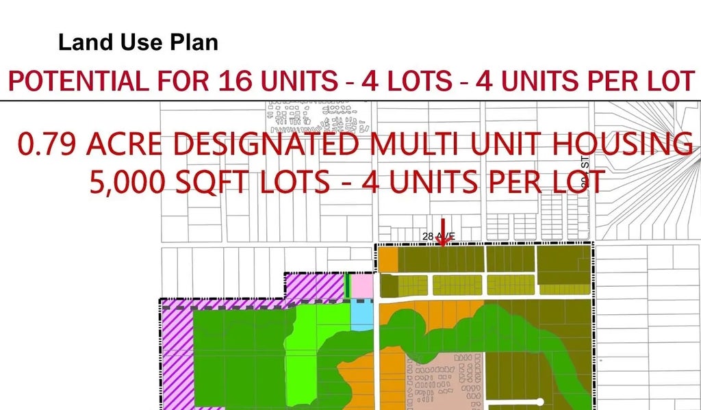 FANTASTIC DEVELOPMENT PROPERTY - SURROUNDED BY DEVELOPMENT - POTENTIAL FOR 4+ LOTS OR 16+ UNITS. Designated 5,000 sqft lots & multi-unit housing. Two road frontages - roads already in at the front & the back of the property. Prime rectangular flat & fully usable 0.79 acre. No easements. Not creeks. City water & sewer out front on the street & on the street behind. Well kept rancher with daylight basement, five bedrooms & two bathrooms. Basement has separate entry & easy suite potential. Very desirable neighborhood with easy access to schools, shopping & parks. Zoning allows parking a commercial truck. An opportunity not to be missed! Enjoy country living minutes to everything while you develop. Invest In Your Future!