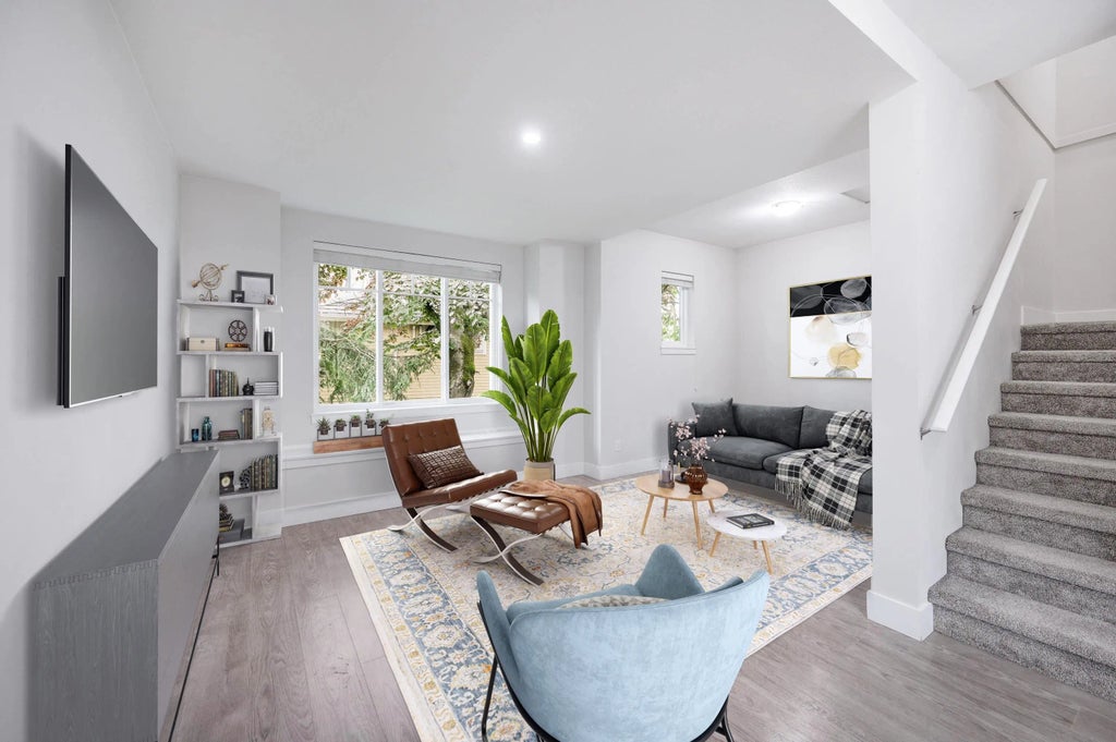 Renovated QUIET & bright SouthEast Corner End Unit - ultra clean and move-in ready! This like-new(2017), A/C-equipped townhome offers: 3 beds and 3 FULL baths! ground-level primary bedroom with ensuite (bright SE corner); spacious 2nd-floor bedroom with full bath (naturally lit NE corner); and an entire 3rd floor dedicated to an expansive master suite. BONUS: 110 SF of extra space on 3rd floor - 2 newly renovated FLEX rooms - ideal for office or hobby use. Bright main(2nd) floor with living room, family room, and separate dining area. New laminate flooring & stairs throughout, New lighting, side-by-side double garage, and large fenced front yard. Bus stop steps away and located in a high-ranking school catchment.
